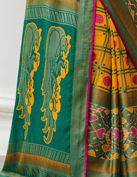 Mustard Yellow Silk Saree With Exotic Art Printed Border