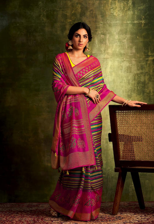 Multicolor Striped Saree With Embroidered Blouse