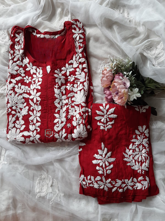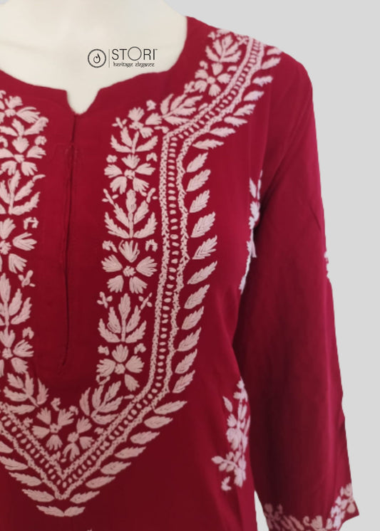 Maroon Soft Rayon Handcrafted Chikankari Kurti