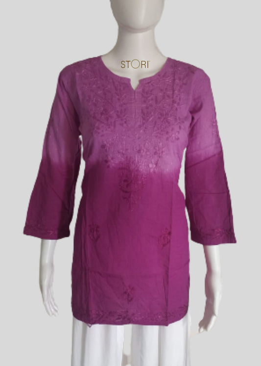 Rihaana Purple Dobby Cotton Ombre Shaded Short Chikankari Kurti