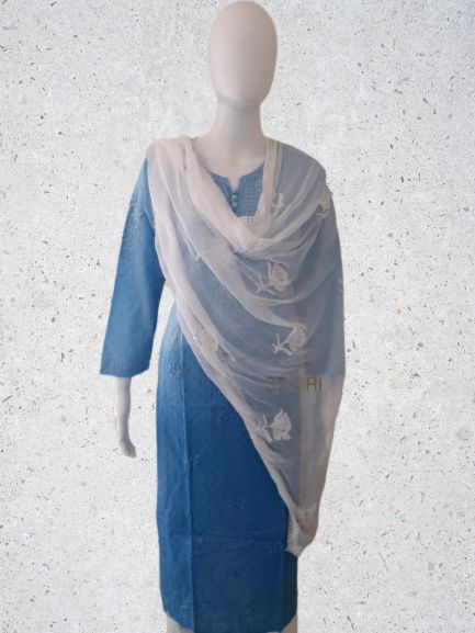 Powder Blue Ombre Shaded Soft Dobby Cotton Chikankari Kurti