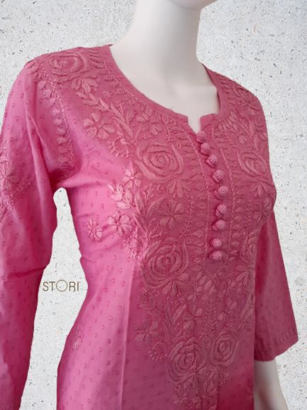 Rose Pink Ombre Shaded Soft Dobby Cotton Chikankari Kurti