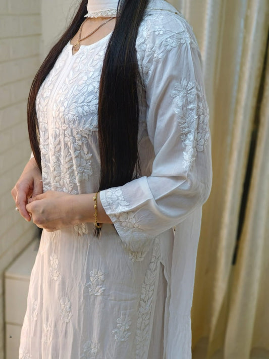 Kaaya White Modal Chikankari Kurti