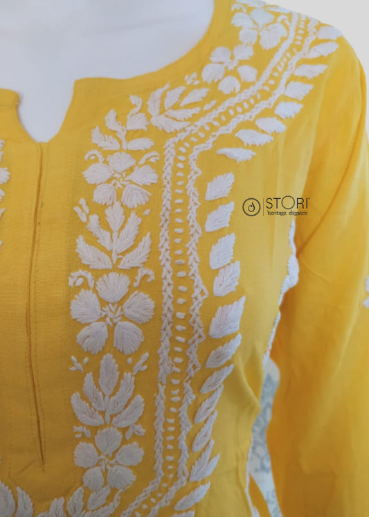 Bright Yellow Soft Rayon Handcrafted Chikankari Kurti