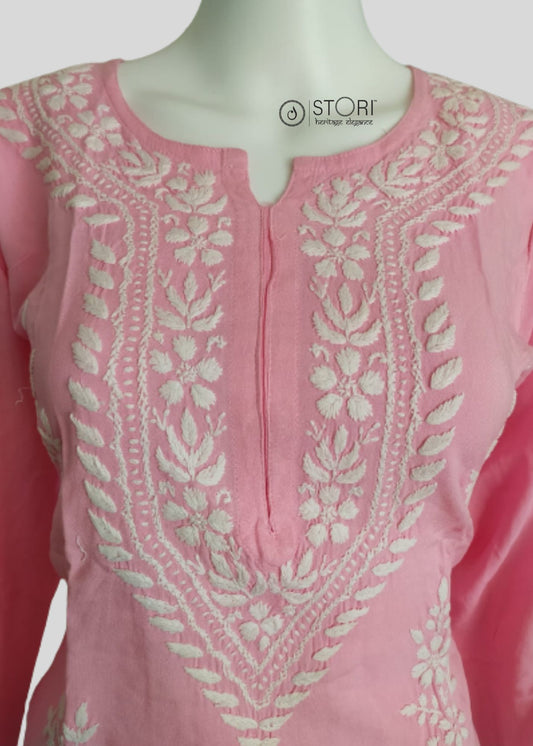 Light Pink Soft Rayon Handcrafted Chikankari Kurti