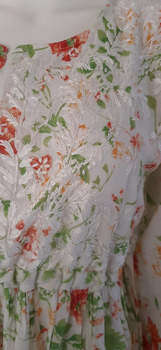 Petals Apricot Orange Cotton Mulmul Chikankari Kurti