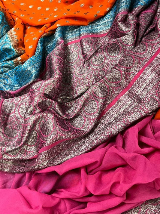 Bright Orange Banarasi Khaddi Georgette Pure Silk Saree