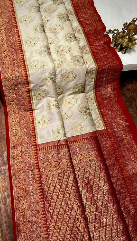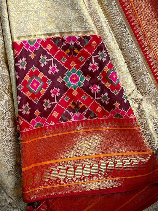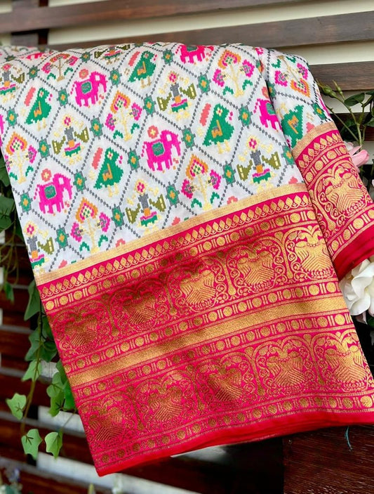 Alabaster White Pure Banarasi Katan Silk Patan Patola Saree