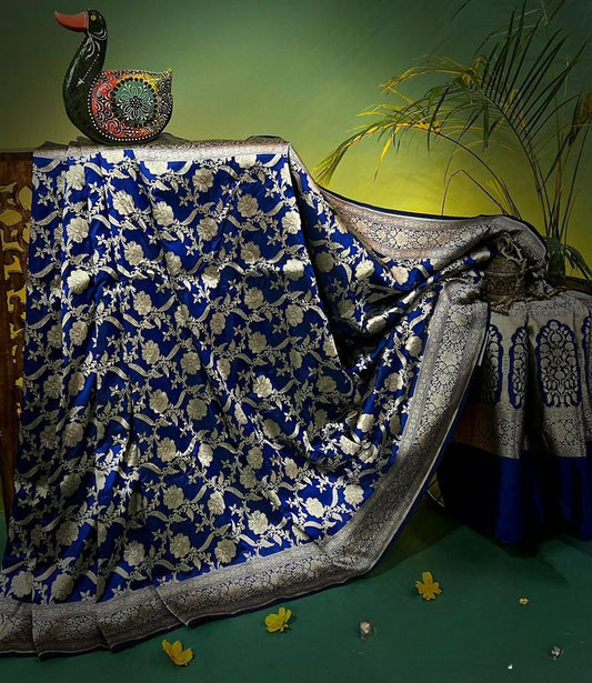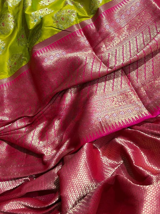 Bright Mehendi Green Pure Banarasi Silk Saree