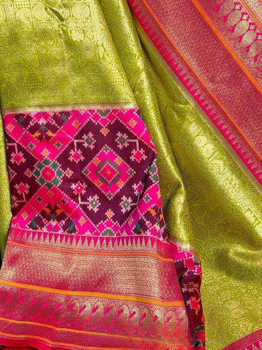 Bright Olive Green Pure Banarasi Katan Silk Patan Patola Saree