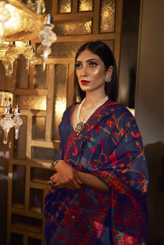 Navy Blue Kashmiri Kani Jamewar Saree