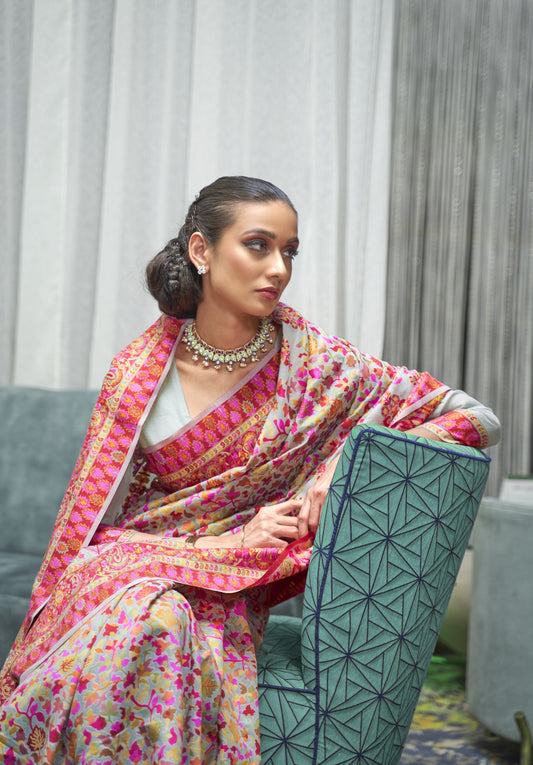 Pearl White Kashmiri Kani Jamewar Saree