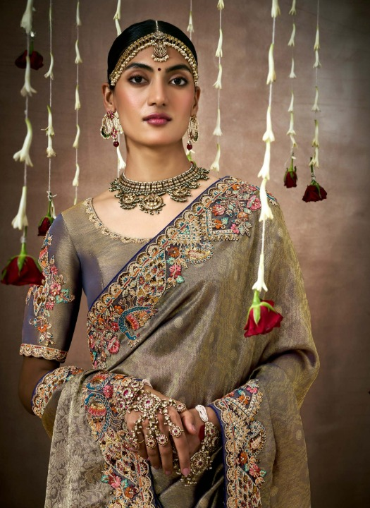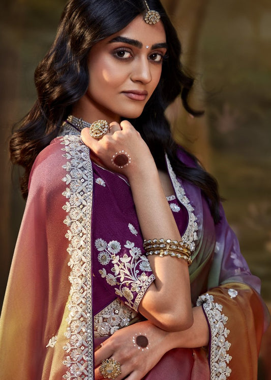 Multicolor Tissue Silk Saree With Embroidered Designer Blouse - Limited Edition