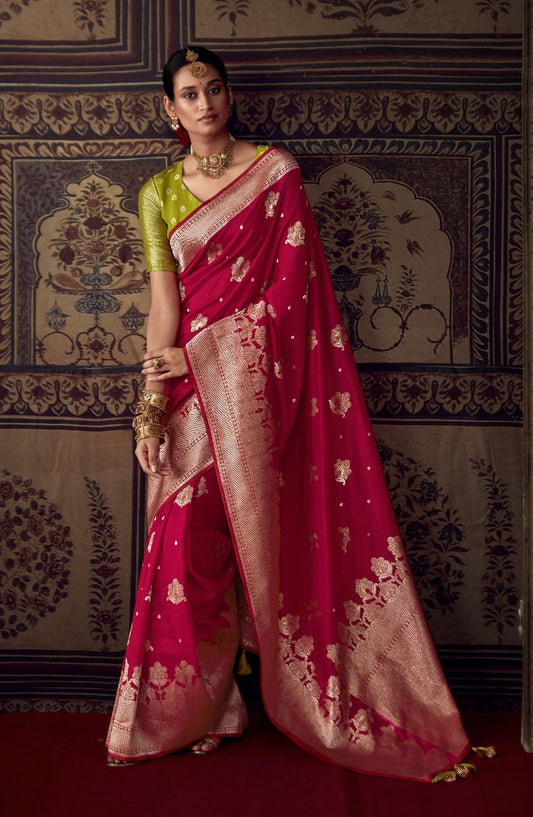 Ruby Red Banarasi Soft Silk Saree