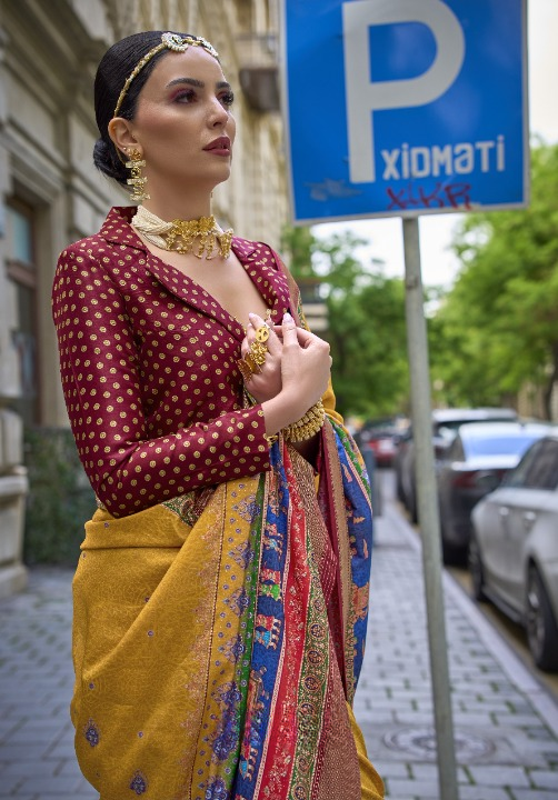 Mustard Yellow Silk Saree With Exotic Art Printed Border