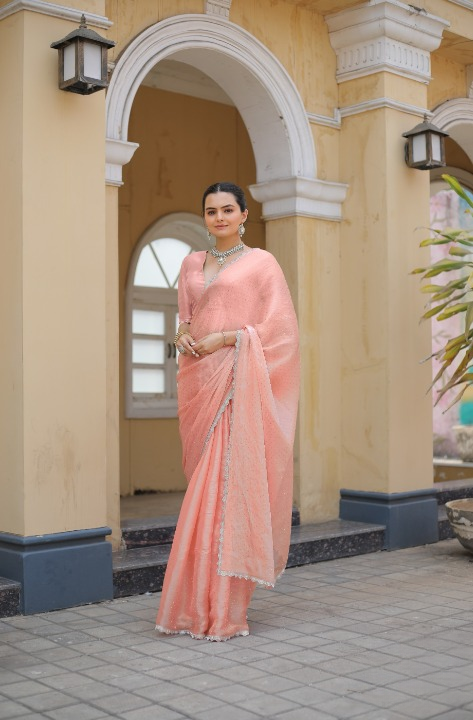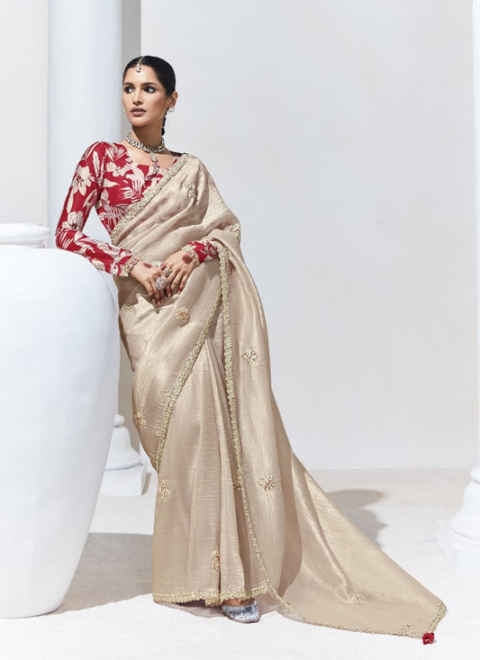 Porcelain Ivory Crush Tissue Silk Saree With Designer Blouse