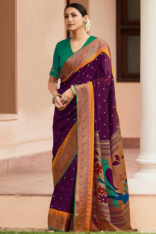 Shamrock Green Pathani Saree With Embroidered Blouse