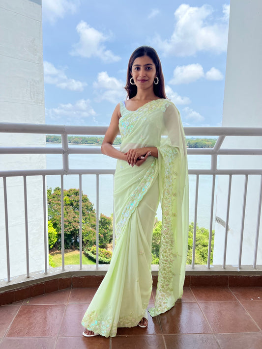Firozi Popcorn Handloom Cotton Mulmul Saree