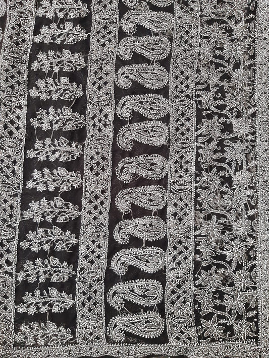 Black Noor Full Jaal Hand Embroidered Lucknowi Chikankari Saree