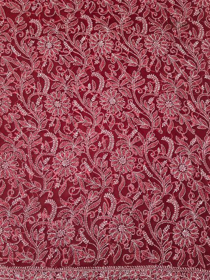 Maroon Noor Full Jaal Hand Embroidered Lucknowi Chikankari Saree