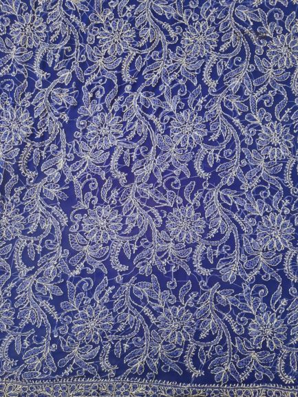 Royal Blue Noor Full Jaal Hand Embroidered Lucknowi Chikankari Saree