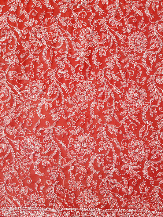 Red Noor Full Jaal Hand Embroidered Lucknowi Chikankari Saree
