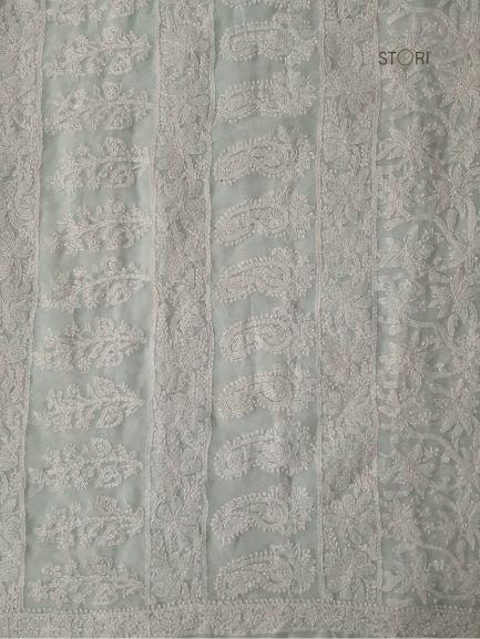 Powder Blue Noor Full Jaal Hand Embroidered Lucknowi Chikankari Saree