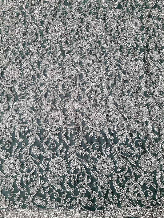 Pine Green Noor Full Jaal Hand Embroidered Lucknowi Chikankari Saree