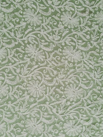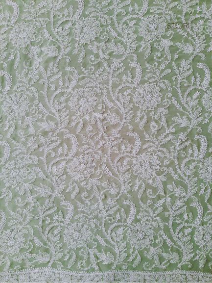 Pista Green Noor Full Jaal Hand Embroidered Lucknowi Chikankari Saree