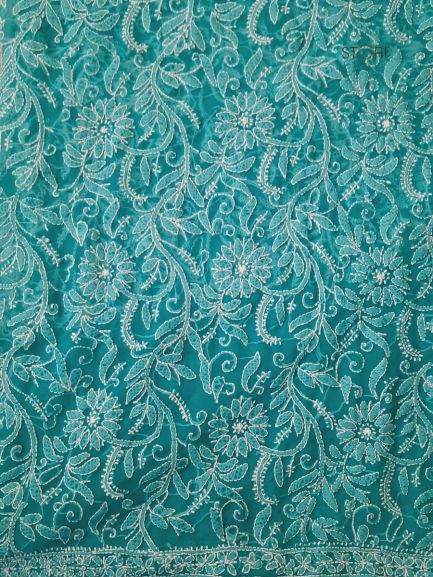 Teal Blue Noor Full Jaal Hand Embroidered Lucknowi Chikankari Saree