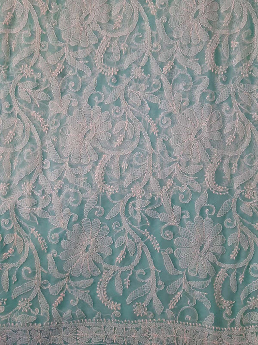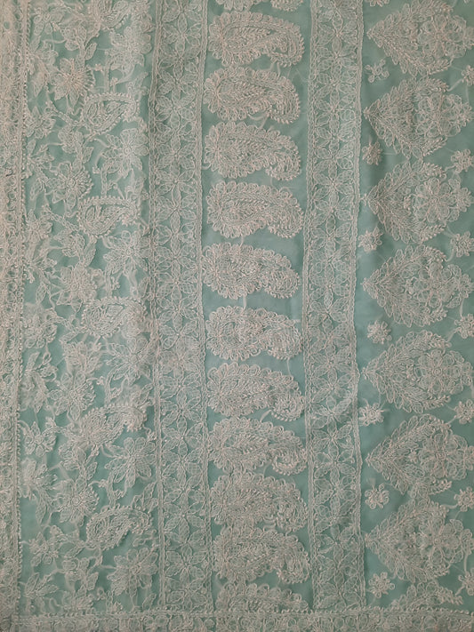 Mint Green Noor Full Jaal Hand Embroidered Lucknowi Chikankari Saree