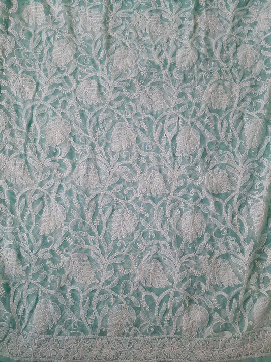 Seagreen Noor Full Jaal Hand Embroidered Lucknowi Chikankari Saree