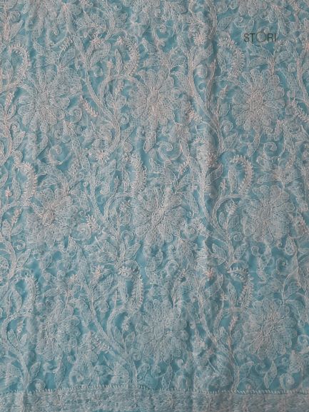 Sky Blue Full Jaal Hand Embroidered Lucknowi Chikankari Saree