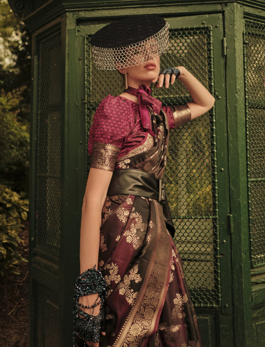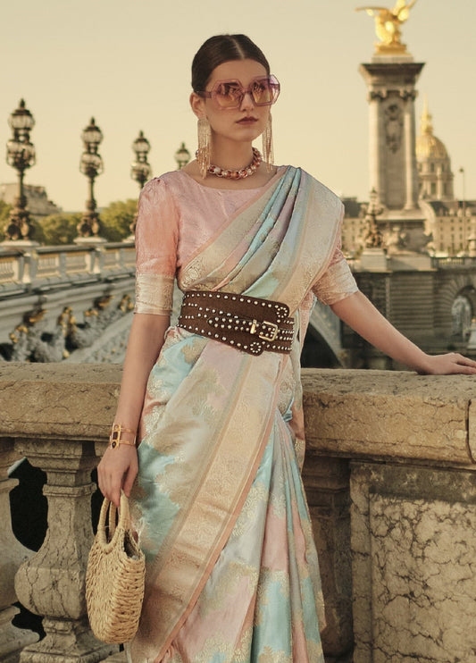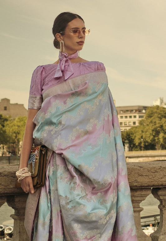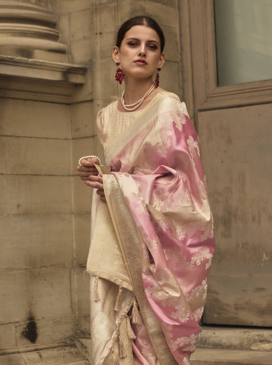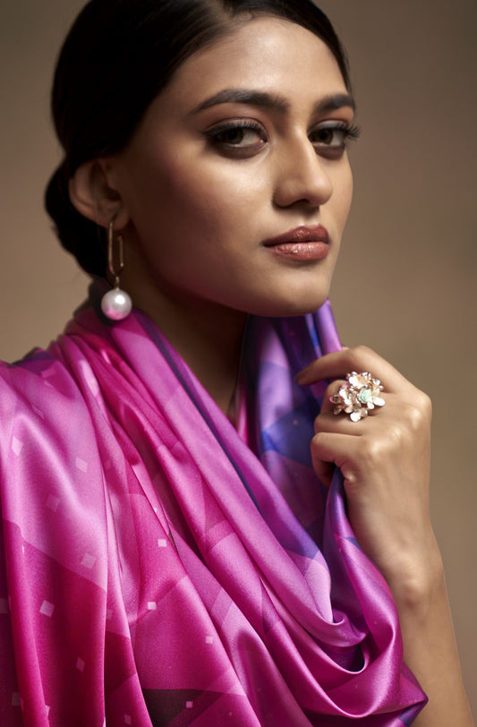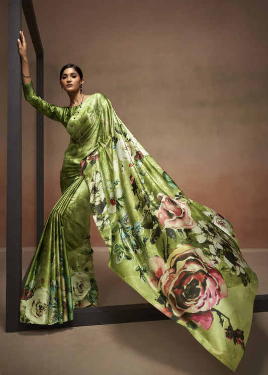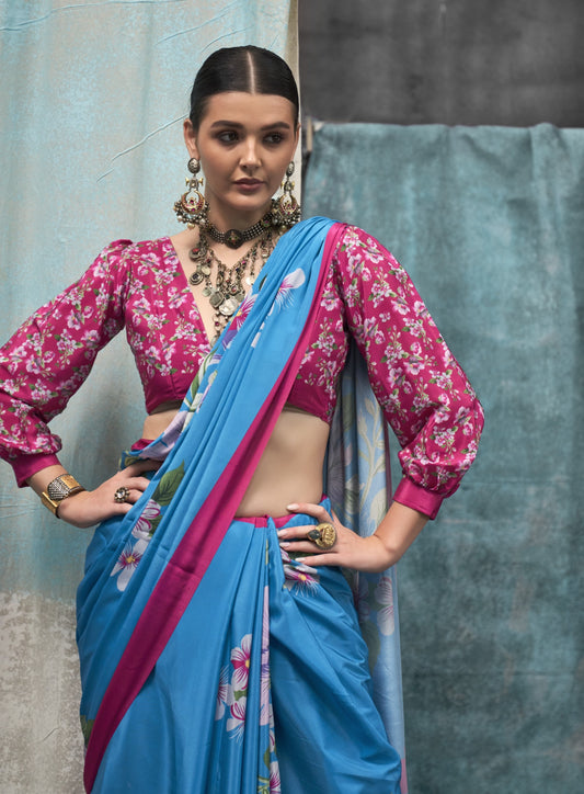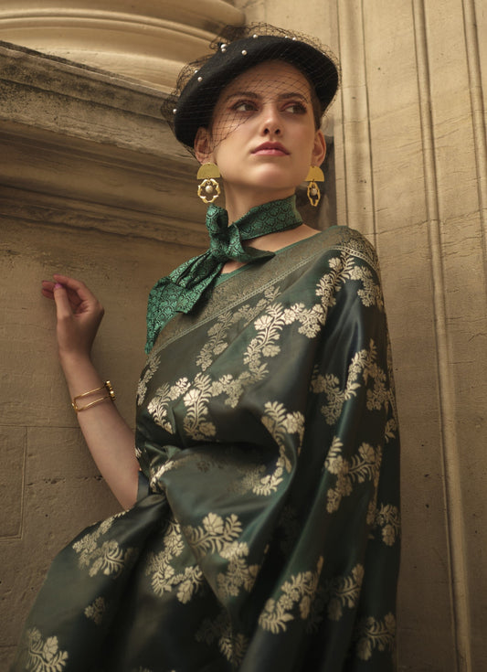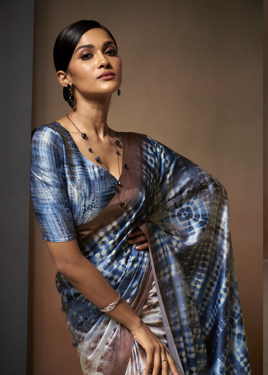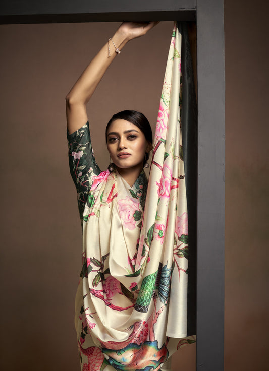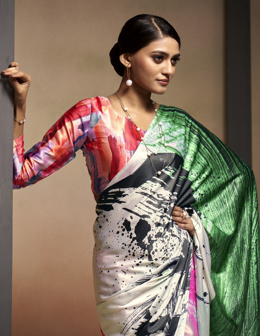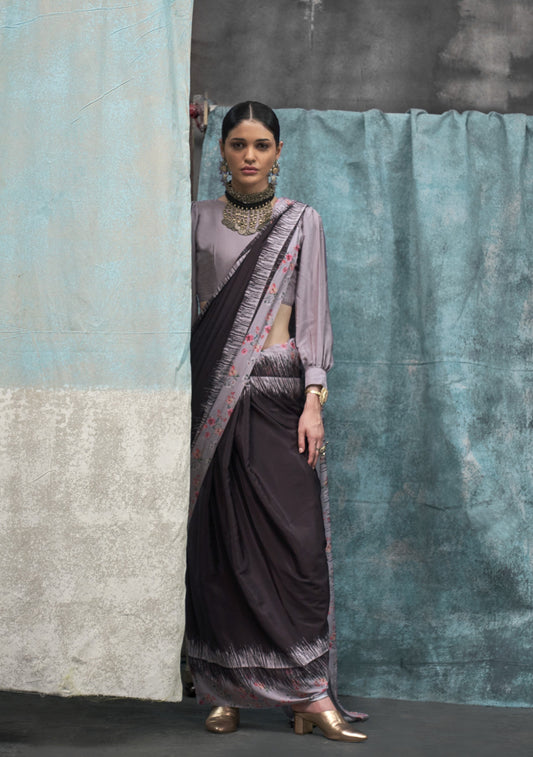 Light Grey & Black Printed Pure Crepe Silk Saree
