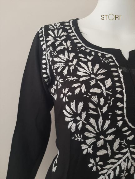 Aiza Black Soft Modal Handcrafted Short Chikankari Kurti