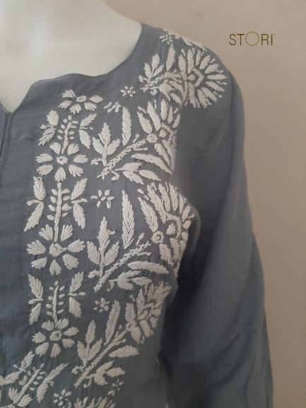 Aiza Grey Soft Modal Handcrafted Short Chikankari Kurti