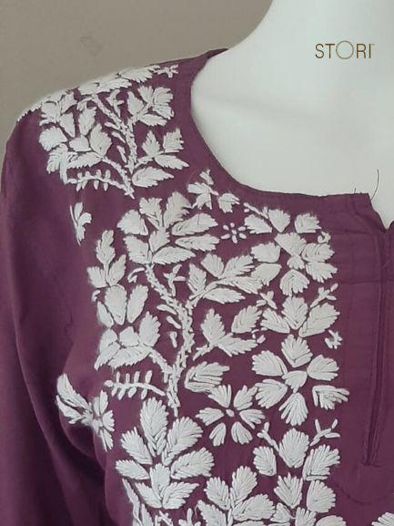 Aiza Mauve Soft Modal Handcrafted Short Chikankari Kurti