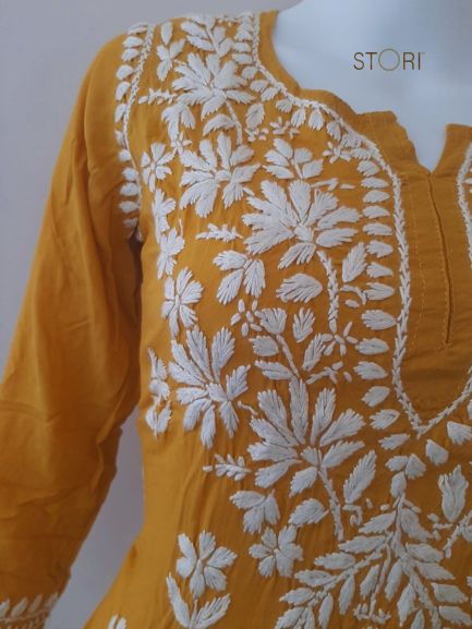 Aiza Mustard Yellow Soft Modal Handcrafted Short Chikankari Kurti