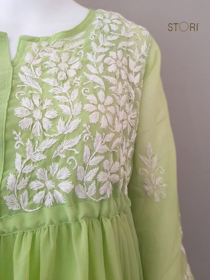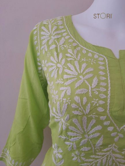 Aiza Parrot Green Soft Modal Handcrafted Short Chikankari Kurti