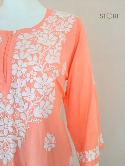 Aiza Peach Soft Modal Handcrafted Short Chikankari Kurti
