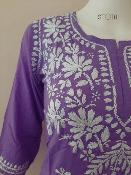Aiza Purple Soft Modal Handcrafted Short Chikankari Kurti