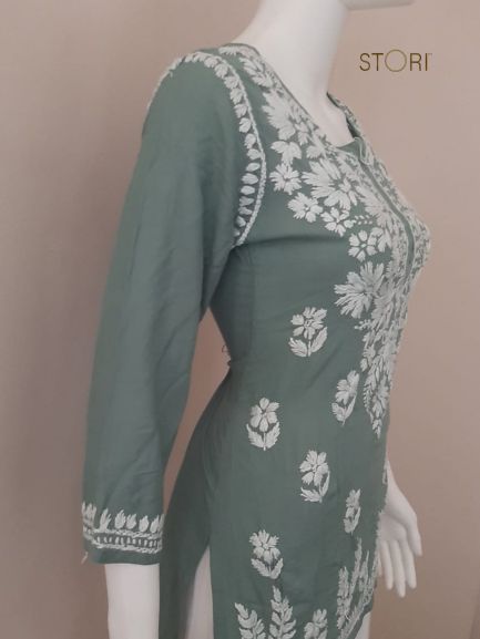Aiza Ramagreen Soft Modal Handcrafted Short Chikankari Kurti