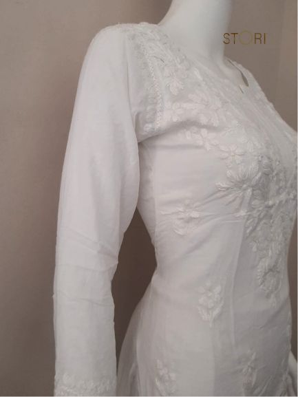 Aiza White Soft Modal Handcrafted Short Chikankari Kurti