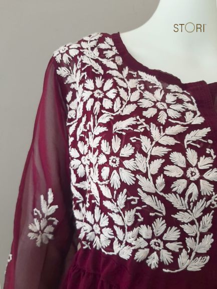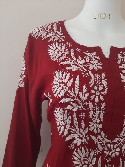 Aiza Wine Soft Modal Handcrafted Short Chikankari Kurti