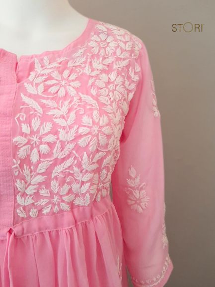 Nora Rose Pink Short Georgette Chikankari Kurti