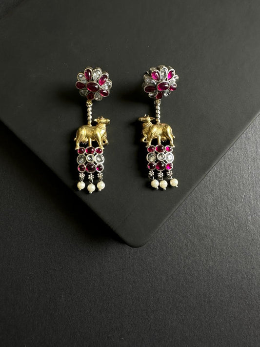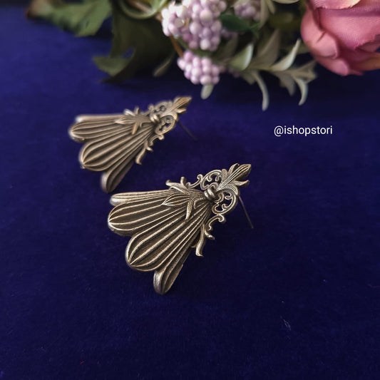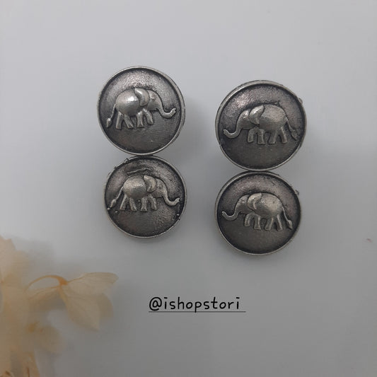 Antique Gray Owl Oxidized German Silver Statement Earrings
