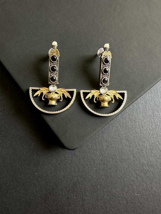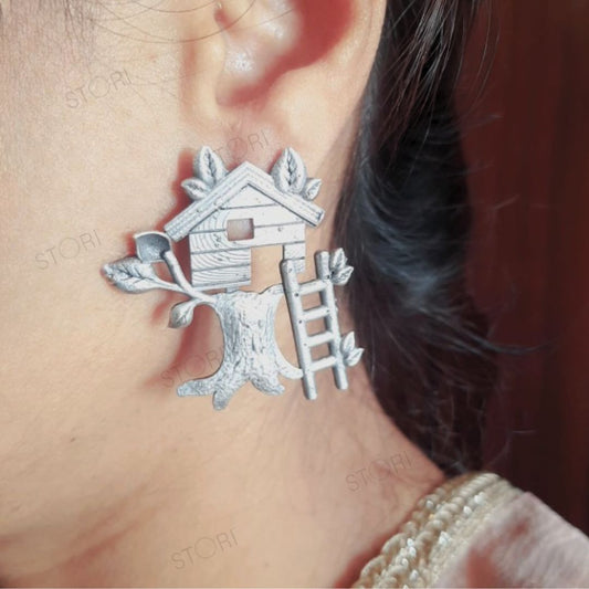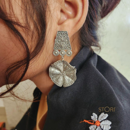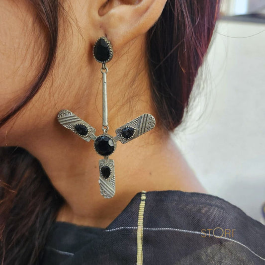 Stairs to Moon Oxidized German Silver Statement Earrings