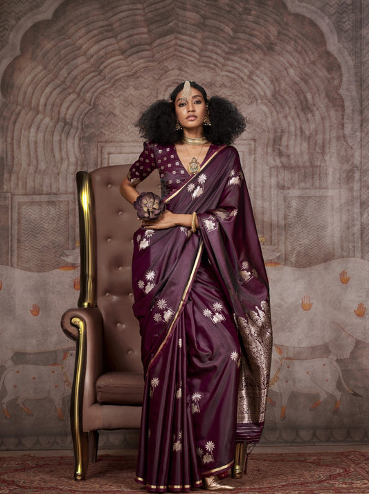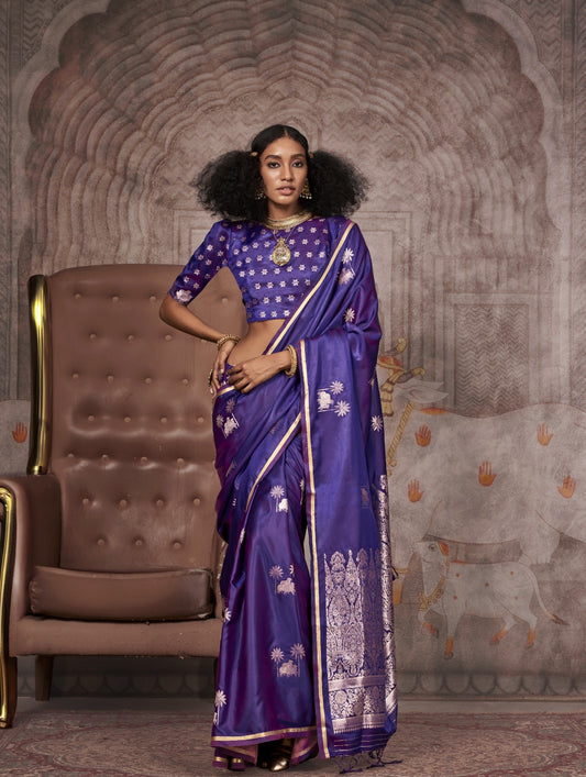 Banarasi Silk Saree With Purple Diamond Palettes