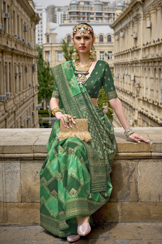 Banarasi Silk Saree With Green Diamond Palettes