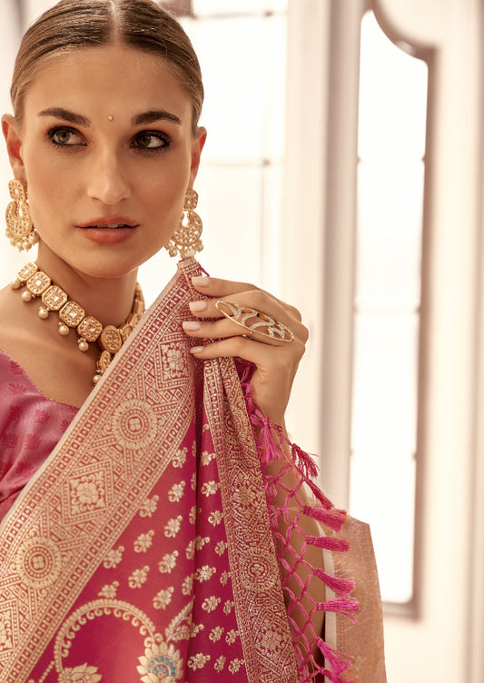 Pastel Pink Tissue Silk Saree With Embroidered Designer Blouse